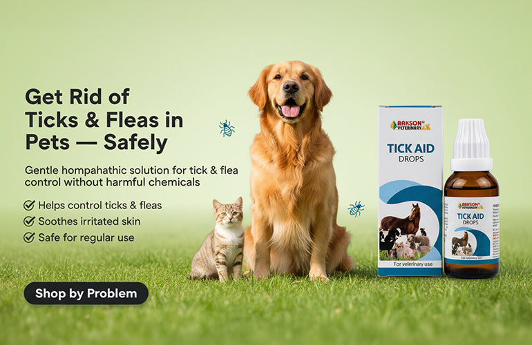At Bakson Veterinary, we offer safe and effective homoeopathic solutions for pets that support skin health, digestion, immunity, stress, and overall wellness. Our products help manage common issues such as itching, infections, ticks, and heat stress — naturally and without side effects. Trusted by vets and pet parents, our remedies are gentle, easy to use, and suitable for long-term care to keep your pets healthy, happy, and protected every day.